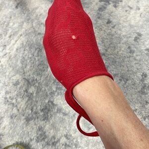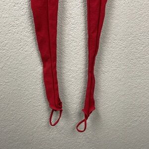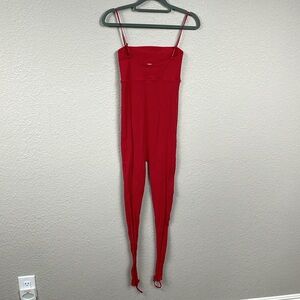 New Simkhai x Wolford Intricate Warp Knit Jumpsuit Catsuit Red Stirrup Sz M