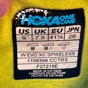 The product is a pair of Hoka One One Evo XC spikeless running shoes for men in size 9. These blue and yellow sneakers feature a lace-up closure, rubber outsole, and are designed for summer, fall, and spring seasons. The lightweight and comfortable shoes are suitable for running and jogging, with a polyester upper material and fabric lining and insole. The American-themed shoes have a colorblock pattern and are part of the Hoka One One EVO product line, offering a stylish and functional option for active wear.