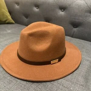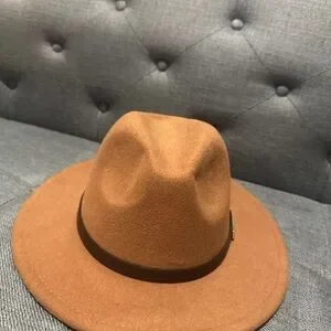 Stylish Tan Fedora Hat with Brown Band