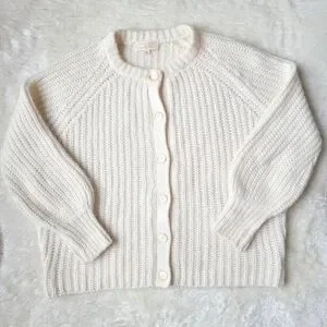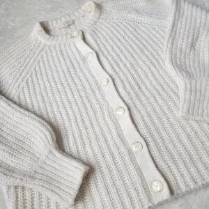 Alpaca and wool cardigan with long slightly puffed sleeves