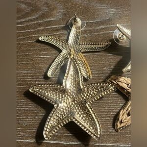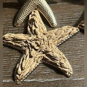 Gold Tone and Natural Rafia Starfish Statement Earrings Nautical NEW Beachy