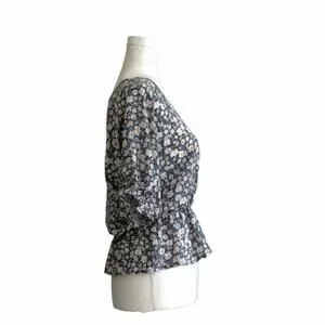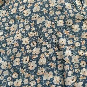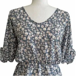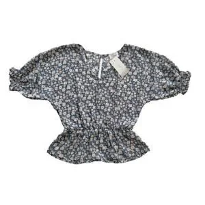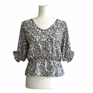 Sienna Sky Top Blouse Short Sleeve Elastic Waist Blue White Floral Top Size XS