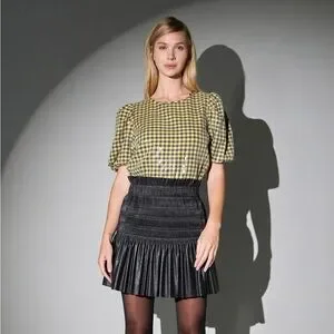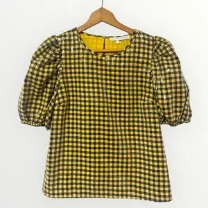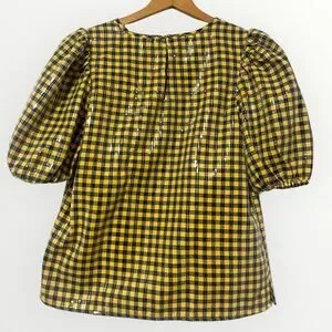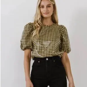 ENGLISH FACTORY SEQUINS PUFF SLEEVE GINGHAM TOP SMALL