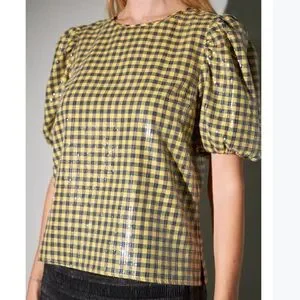 Add some glamor to your style with this sequins puff sleeve gingham top. With a touch of sparkle, this top will make any outfit shine. The gingham print is retro and fun, while the puff short sleeves keep it modern. Perfect for all occasions, this top is sure to turn heads.
