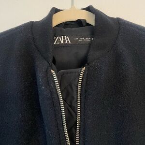 Zara Navy Cropped Bomber Jacket