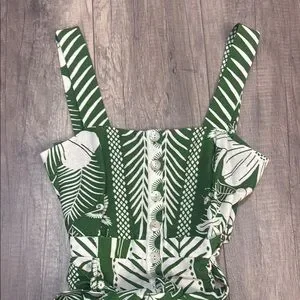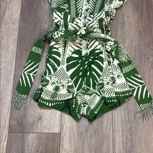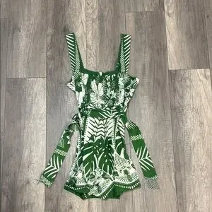FARM Rio Green and White Tropical Romper