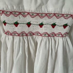 VTG Girls Smocked Strawberry Dress White Embroidered Long Sleeve Collar READ