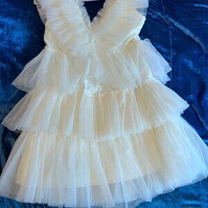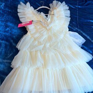 BETSEYS TIERED TULLE DRESS CREAM