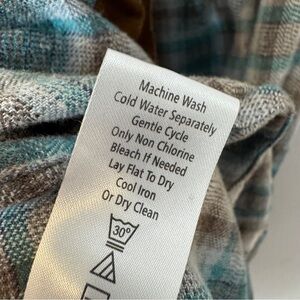 Pre owned condition with minor nubbing on plaid. Gorgeous floral embroidery on the back. Button up, with roll tab sleeves.
