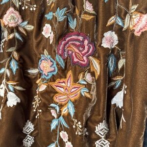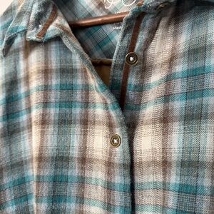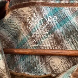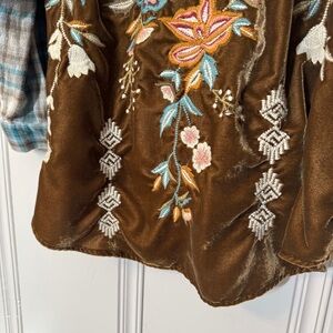 Kyla Seo Plaid Velvet Embroidered Back Button Up Tunic Top Boho Size XXL