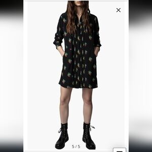 Zadig & Voltaire Rougi Floral Long Sleeve Silk Shirtdress