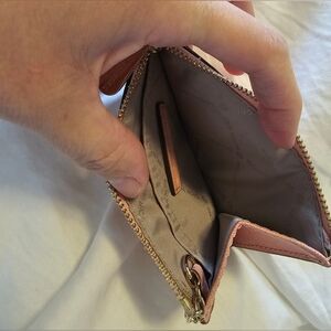 Stylish pink card holder by Michael Kors. Features a sleek design with a zip closure.