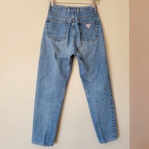 Vintage 80s Guess High Rise Mom Jeans Cotton Denim Triangle Logo Size 26