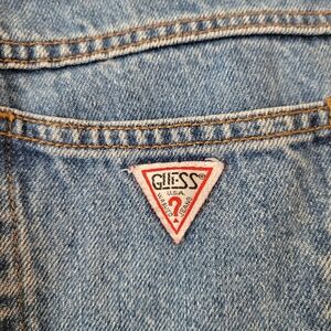 - triangle guess logo patch on back pocket