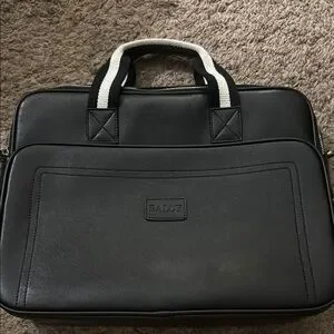 Elevate your style with the Bally Black Leather Men's Bag. Perfect for work or travel, this sleek bag combines functionality with luxury. I am honestly not experienced in this brand and I don’t see any other tags inside indicating that it is genuine leather, but it might be! I also don’t see any other tags inside helping me confirm authenticity, so selling cheap, these usually sell for about 200 or more, selling for half of that because I honestly don’t know. The engraving on the zippers seem pretty legit and you can tell it is high-quality. Please note the severe loose threads at the bottom of the seams of this bag! There may be other signs of use like little scuffs or where on the corners, or various places throughout. Inside features one zipped component with two smaller pockets, one component that is separated by a slightly padded area, and then a Velcro strap that can go around that to protect your laptop. Outside zipped compartment. The bag itself is not very sturdy like a heavy leather briefcase, but is more of like a soft bag.