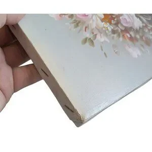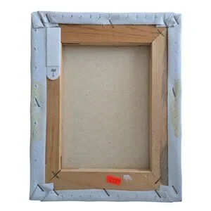 Canvas has slight wear on corners, visible staple marks on edges.