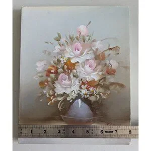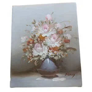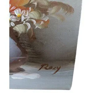Original Floral Oil Painting On Stretched Canvas Signed By Artist Roxy - Romanti