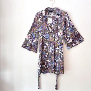 NEW! Zara Satin Kimono Style Paisley Pattern Tunic Mini Dress, Belted Oversized
