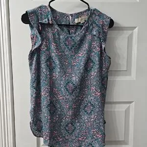 Elevate your wardrobe with this stylish patterned sleeveless top. Perfect for any occasion, this top features a beautiful blend of colors that will make you stand out.