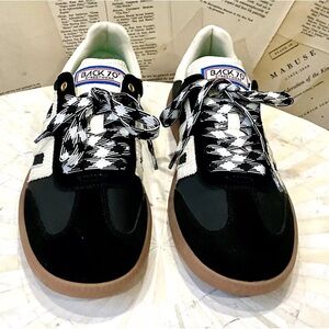 Free People Back 70 Ghost Sneakers Black Mixed Material 2 Tone Laces