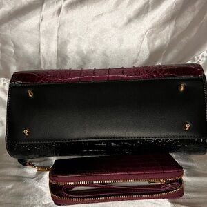 This stylish handbag features a rich burgundy crocodile-embossed design, perfect for adding a touch of luxury to any outfit. The black accents provide a sleek contrast, making it a versatile accessory for any occasion.