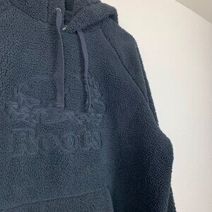 Roots Plush Sherpa Pullover Hoodie Sweatshirt Black Size Large