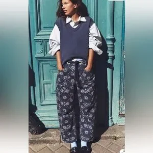 We The Free Moxie Printed Low Slung Barrel Jeans Wallpaper Geo Blue White