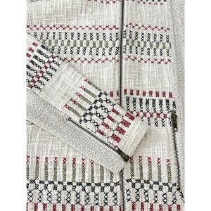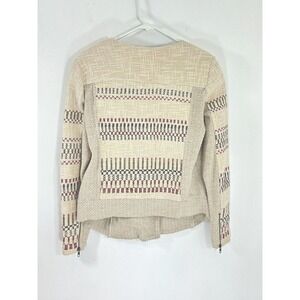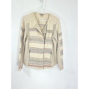 Lucky Brand Womens Size Large Cream Woven Zip Up Jacquard Southwest Moto Jacket