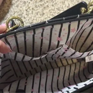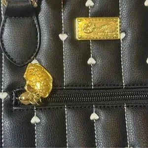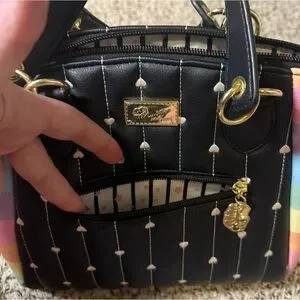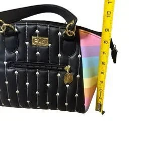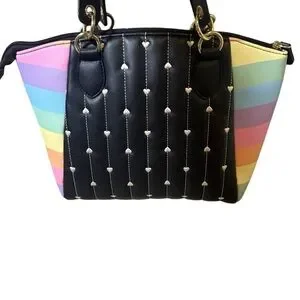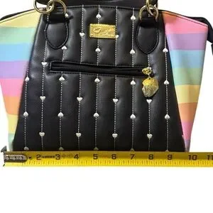 Betsy Johnson Rainbow Black Quilted Heart Satchel Handbag Purse Women’s