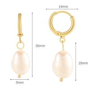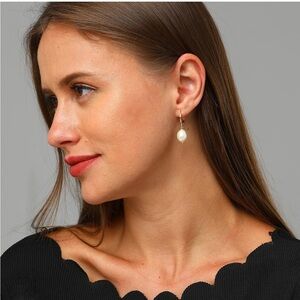 Gold Hoop Huggie Pearl Dangle Drop Earrings NWT