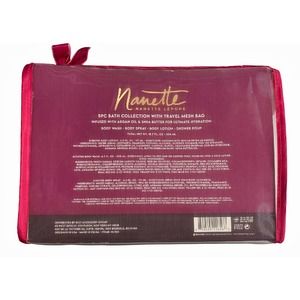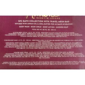 Nanette Lepore Velvet Bloom Bath collection: Spray, Lotion, Body wash & Pouf comes with travel mesh bag