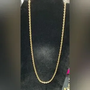 The Napier gold necklace showcases an exquisite rope twist design, intricately woven to create a textured and sophisticated appearance. Its consistent thickness and subtle sheen enhance its timeless elegance, making it a perfect addition to any jewelry collection.