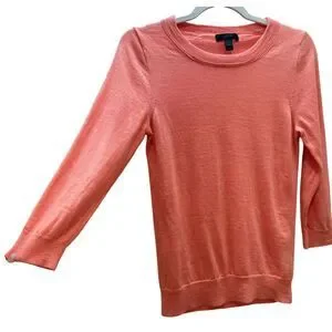J.Crew Merino Wool Coral 3/4 Sleeve Lightweight Sweater Classic Crewneck SZ S