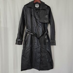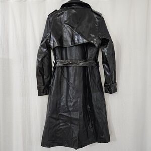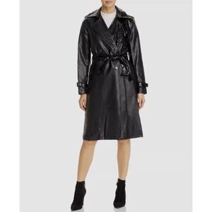 Apparis Priya Crocodile Embossed Faux Leather Trench Coat in Black Size M