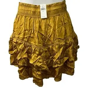 Aerie Size S Mini Skirt Sweet N’ Silky In Honey Ruffle Layers Satin Elastic NEW