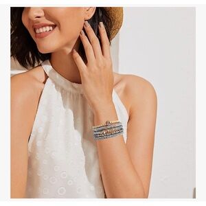 Elegant bracelet set featuring gray and gold beads. Perfect for adding a touch of sophistication to any outfit.