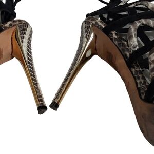 Marciano high heel python and sued leather shoes.