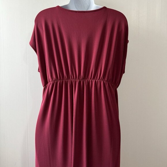 Talbots Maroon V-Neck Maxi Dress Polyester Spandex Sz L Elastic