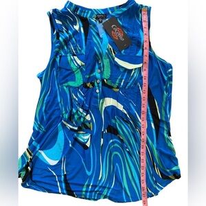 COCOMO 1X Blue Green Plus Size sleeveless women's Blouse top tunic shirt