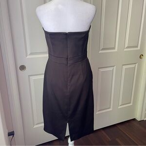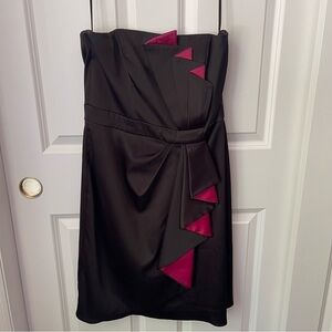 WHBM Satin Strapless Cocktail Dress Faux Wrap Front Black with Pink Pleating
