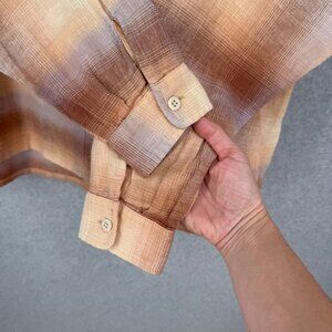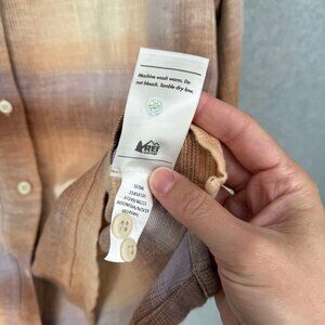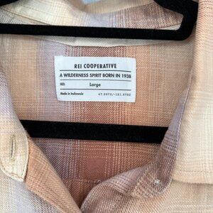 REI Co-op Womens Trailsmith Long-Sleeve Shirt Size L Peach Lavender Plaid Hemp
