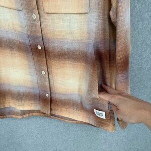 • Outdoor, Casual, Oversized, Button Up, Layer, GORP, Neutral, Plaid, Hiking, Camping, Outdoorsy