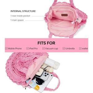 Pink Boho Handmade Woven Straw Bag Chic, Beach Tote, Lightweight & Trendy Spring