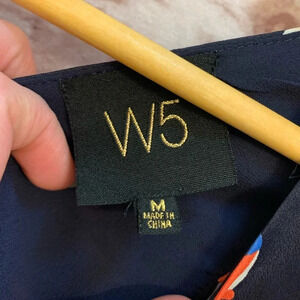 Anthropologie W5 navy background tank top with coral/orange, periwinkle and cream tulip/floral pattern. V-neck front and back. Size medium. In excellent preowned condition. Measurements are taken with top lying flat and are approximate.