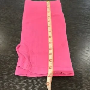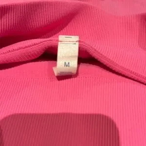 Vibrant pink ribbed sports bra and shorts set. Perfect for workouts.