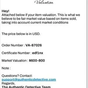 Includes authenticity and value. Both will be printed and added with the shoes.