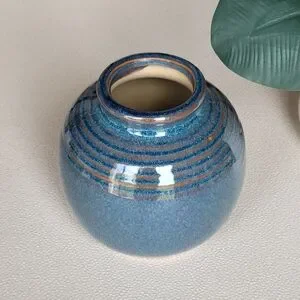 Elegant blue ceramic vase with a glossy finish. Perfect for home decor.