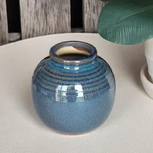 Succluent Glazed Blue Ceramic Vase