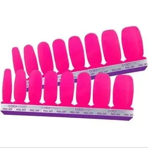 New in package Color Street nail strips. Retired shade “Gloss Angeles” is a solid neon pink. This set has a cardboard cover to protect the neon color from fading due to exposure to sunlight.