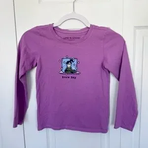 This Life is Good kids' shirt features a fun 'Snow Day' graphic. Made from soft fabric, it's perfect for everyday wear. The vibrant purple color adds a playful touch.